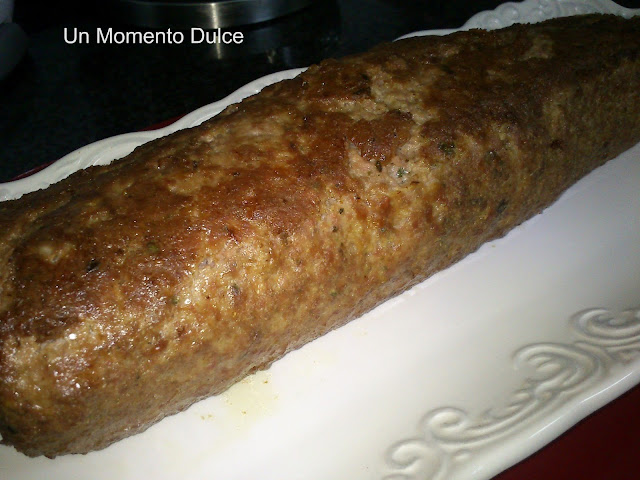 Colocamos el rollo sobre una fuente a la que le hemos agregado un chorro de aceite.