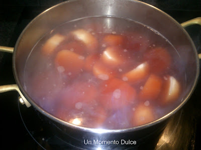 Por último le añadimos 1/2 vaso de agua de la cocción del pulpo, si fuese necesaria se le aumentaría una poca más, según viésemos si la necesitaba.