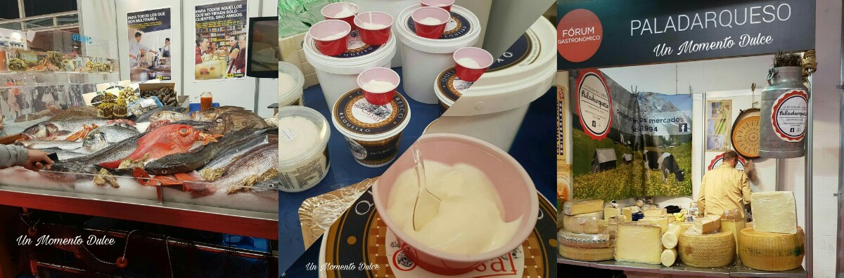 | Un stand con un surtido de pescados y mariscos. O Casal ( el requesón que más me gusta) Paladarqueso, quesos de todo tipo. |