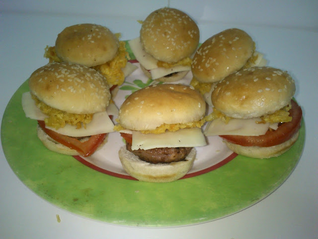 Y hoy ¿que tenemos para cenar?, estas Mini Hamburguesas que parecen de juguete, me encantan para hacer unos pinchos para una cena informal, para los niños... en mi caso,  pero claro su papá los prefiere en pan de barra "grande"...