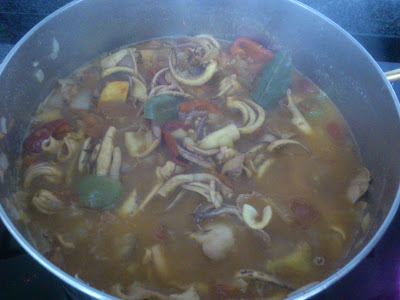 Le aumentamos el vino, azafrán y laurel, cocinándolo todo durante aproximadamente 1 hora o hasta que esté tierna la choupa, que depende del tamaño y la calidad.