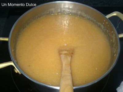 | Cuando se separa del fondo de la cacerola es cuando el membrillo esta cocinado. |