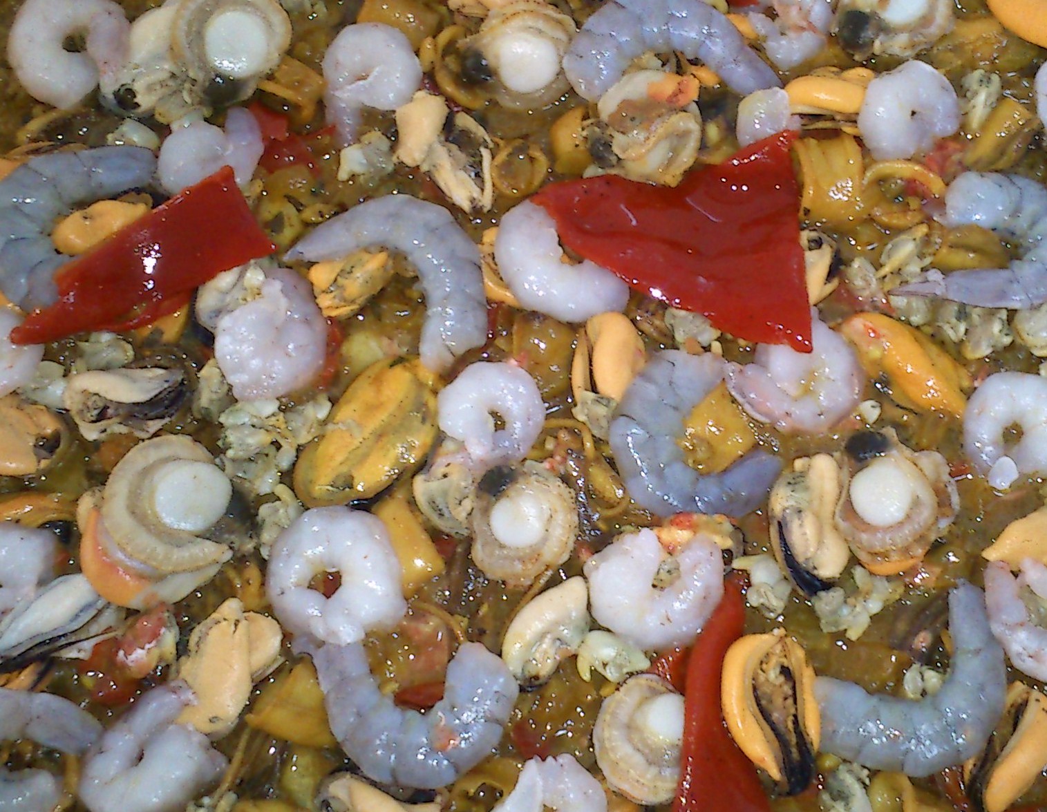 - 1, 5 kg. Mejillones (parece mucho, pero después le quitamos la cascara nos queda en nada).
