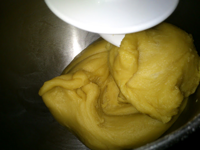 | La masa queda más amarilla, ya que el aceite de nuestro guiso lleva azafrán en lugar de pimentón. |